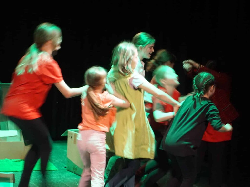 Im 2-Tage-Theater starten wir am Morgen des ersten Tages mit einer Ideensammlung. Daraus erfinden wir Figuren und Szenen, die in einem Mini-Theater als Werkschau am Abend des zweiten Tages präsentiert werden.